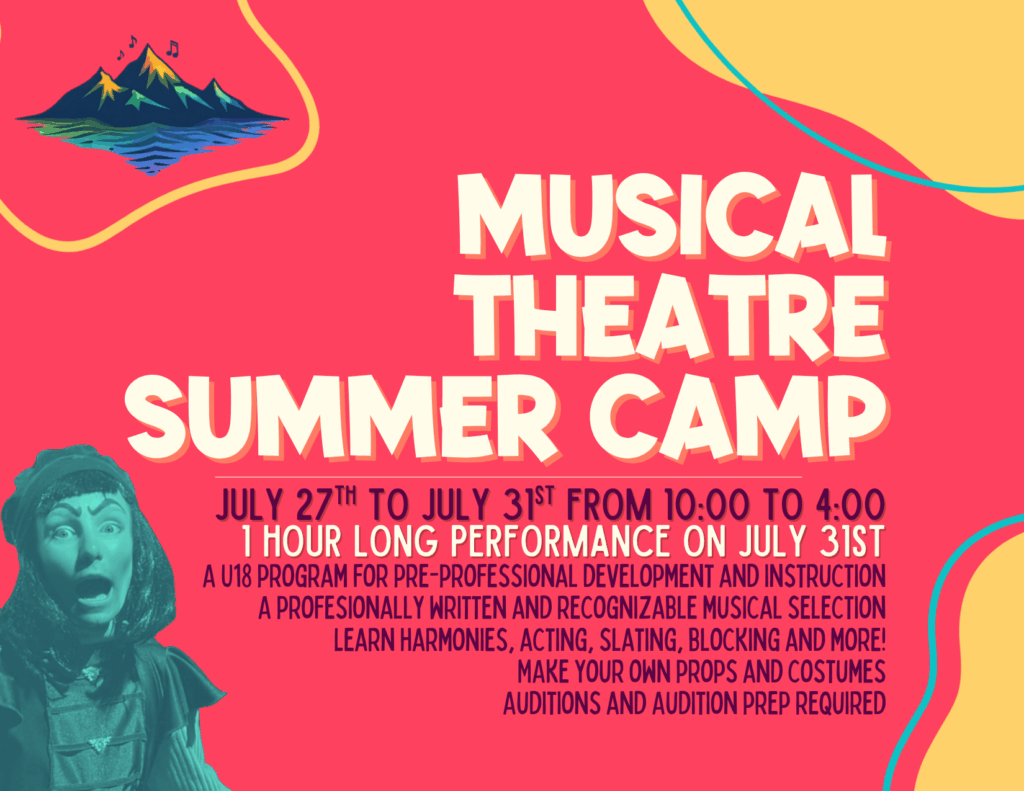 Musical Theatre Camp is back this year and ready to support youth aged 12-18 develop their musical theatre skills through acting, singing, blocking, and more!