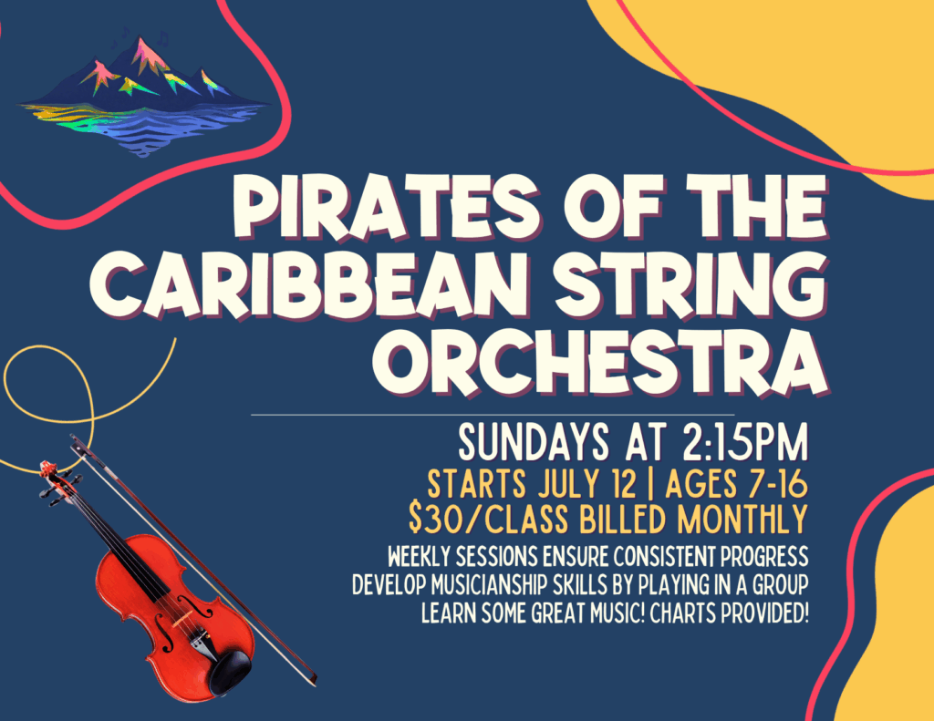 New for summer 2026 is PMM’s first string orchestra class for kids! Learn the fantastic music from Pirates of the Caribbean in an engaging and growth-oriented class setting.
