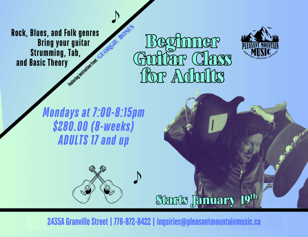 🎸 Participants must have access to an acoustic or electric guitar for the duration of class. Details can be provided on how to rent or purchase an instrument