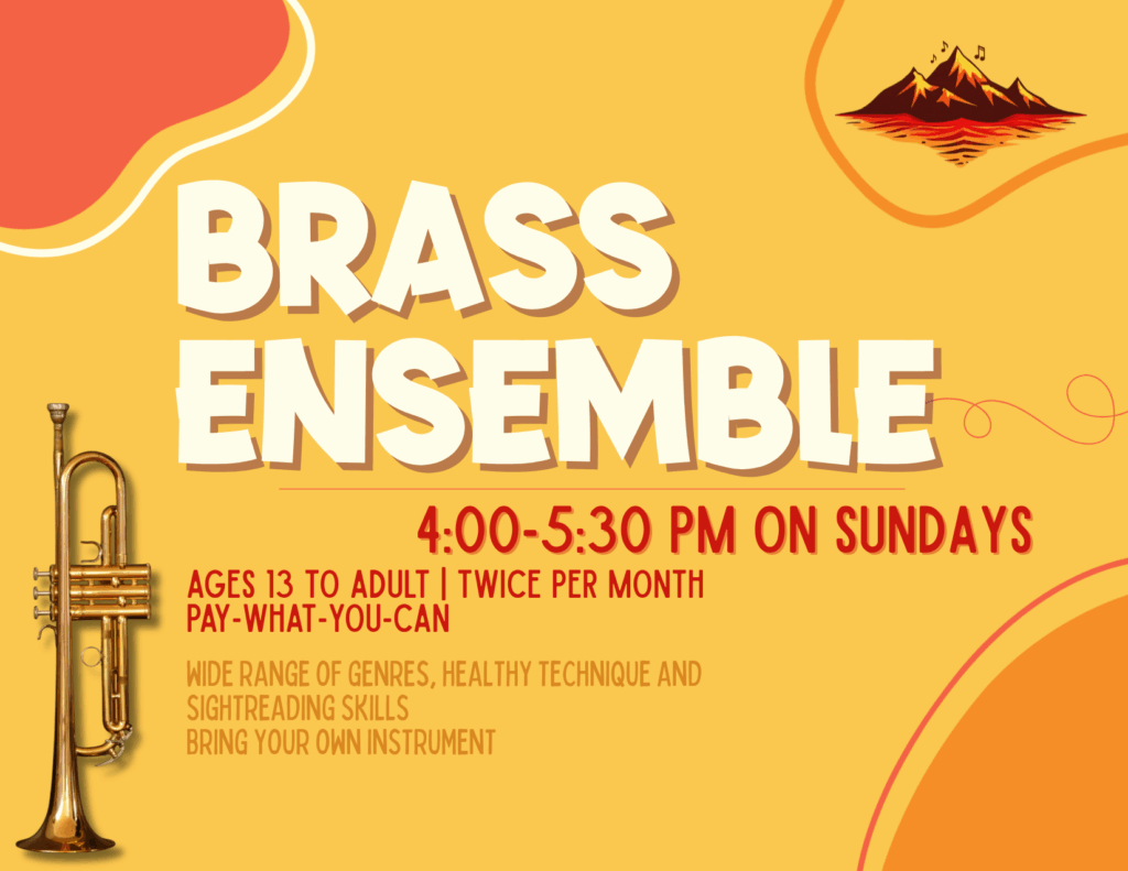 Pleasant Mountain Music is proud to present our first ever Brass Ensemble group class! Participants across the brass instrument family (Trumpet, Trombone, French Horn, Euphonium, Baritone) will enjoy some fantastic musicianship and group music making by joining this welcoming ensemble. You should have some previous playing experience, including a basic understanding of notation reading. But rest assured this class will bring you up to speed on your reading skills, embouchure endurance, tap into your music appreciation, and make the whole process fun.