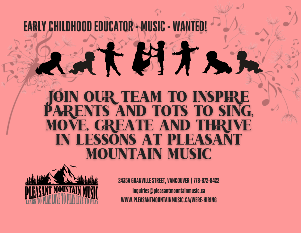 BACKGROUND: PMM is a small but mighty music school located in the trendy South Granville neighbourhood of Vancouver. As a result of our consistent, and continued growth, we are in need of an Early Childhood Educator, specializing in music, capable of leading group classes in the mornings for ages 0-months to 5 years. This contracted position is new to PMM, but is ideal for a current early childhood educator looking to expand their music program into a space larger than their personal home, or to branch out their program into the South Granville neighbourhood. This contracted position will ideally start with 2 (or more) mornings per week, but has the opportunity to expand to more days as the program grows/fills with students. PMM’s main hall has the capacity to hold up to 10 tots and their parents for morning classes, ideally between 8am-1pm Monday through Friday (weekends are an option too though!). Teacher-Contractors are paid on an hourly rate once per month.